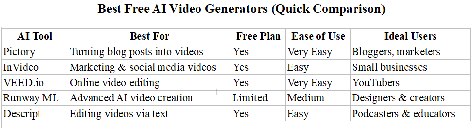 For bloggers, content creators, educators, and affiliate marketers, these tools provide an opportunity to expand their content strategy and reach larger audiences. As AI technology continues to evolve, free AI video generators will become even more sophisticated, enabling creators to produce high-quality videos with minimal effort.