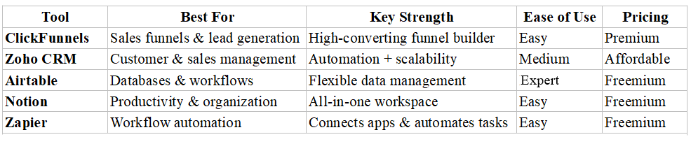 No-code tools have transformed the way businesses operate by making technology accessible to everyone. By using no-code platforms, entrepreneurs can build systems, automate processes, and scale their businesses without technical barriers. Tools like ClickFunnels and Zoho CRM demonstrate how powerful no-code solutions can streamline marketing, sales, and customer management.
