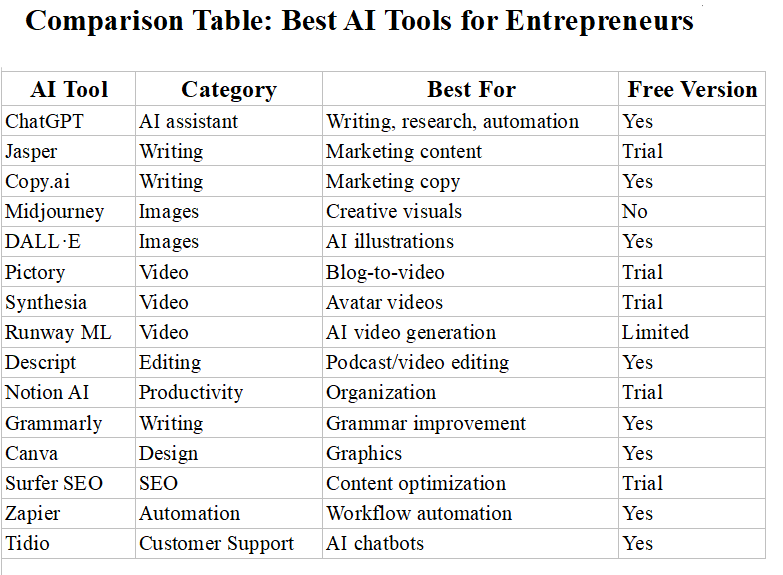 👉By integrating the right AI tools into daily workflows, entrepreneurs can focus on what matters most: innovation, strategy, and business growth.