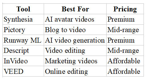 Best AI Video Tools Compared